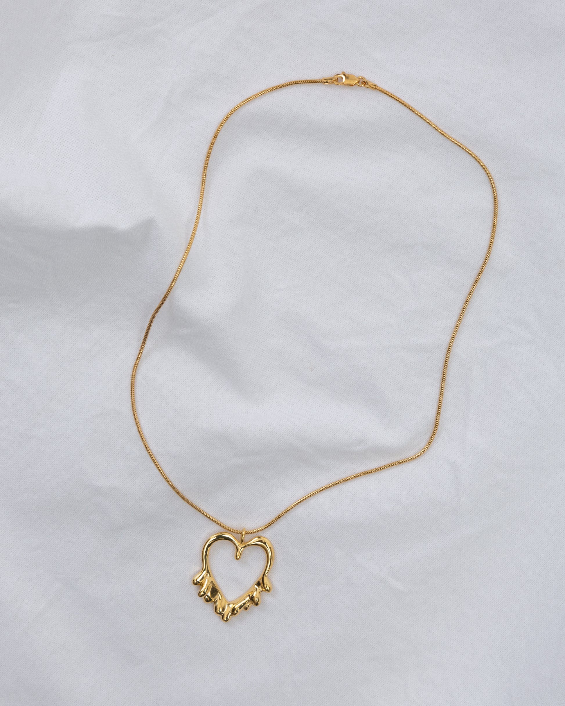 We have a small stock of our Melting Heart necklace. Ready to ship in Silver and Gold Vermeil.