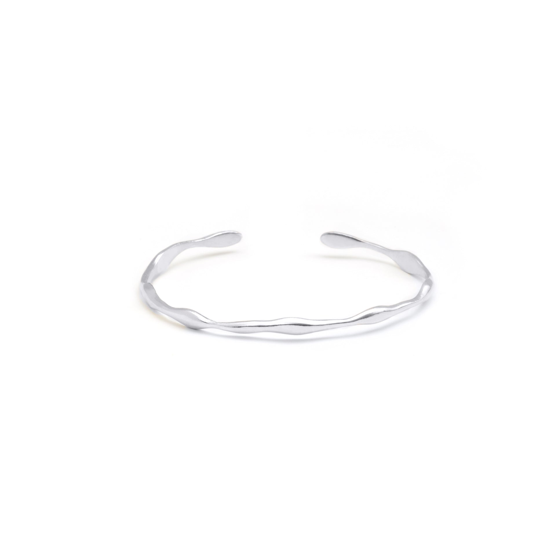 This free flowing bangle curves smoothly around the wrist. The WAVY bangle can be worn together with the Tilde bangle.