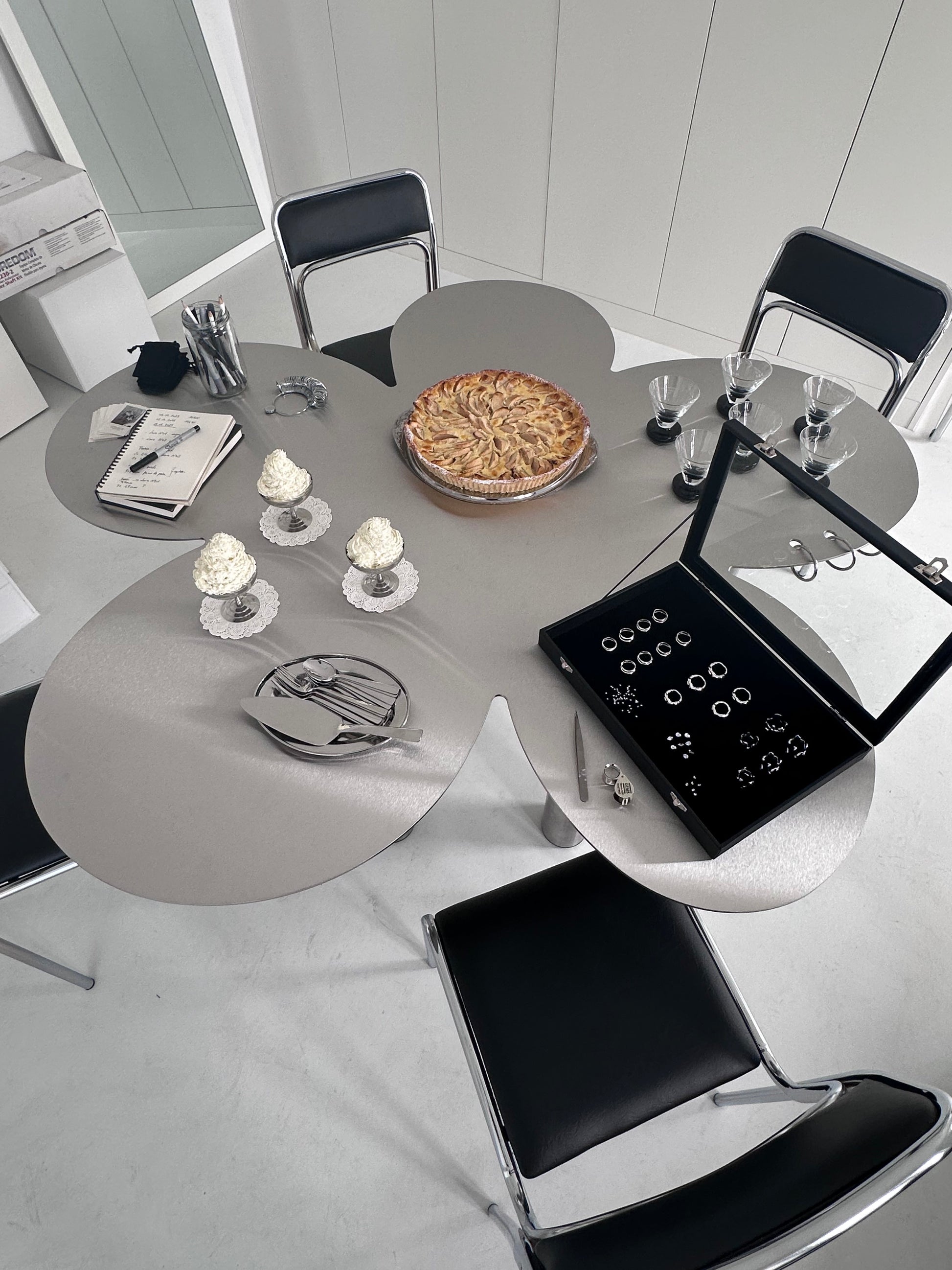 Our PIERCED COSMIC FLOWER Table is made out of Stainless Steel and comes with 3 piercings and detachable feet.
