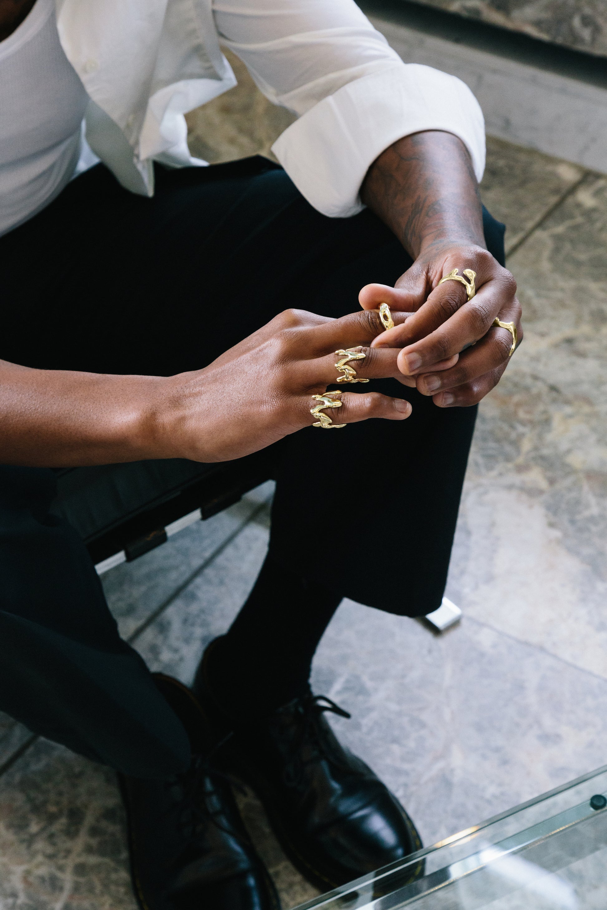Inspired by the formation of lava from molten rock, the LAVA Ring imitates the spontaneity and unpredictability of nature. By heating the wax and dripping it with a coincidental gesture, the ring takes on an organic and natural structure, resembling the way lava flows and travels. Fascinated by the rhythms and the immensity of nature which shows strength and fragility at the same time, the LAVA Ring is part of a series of rings with different shapes and textures evoking molten substance.