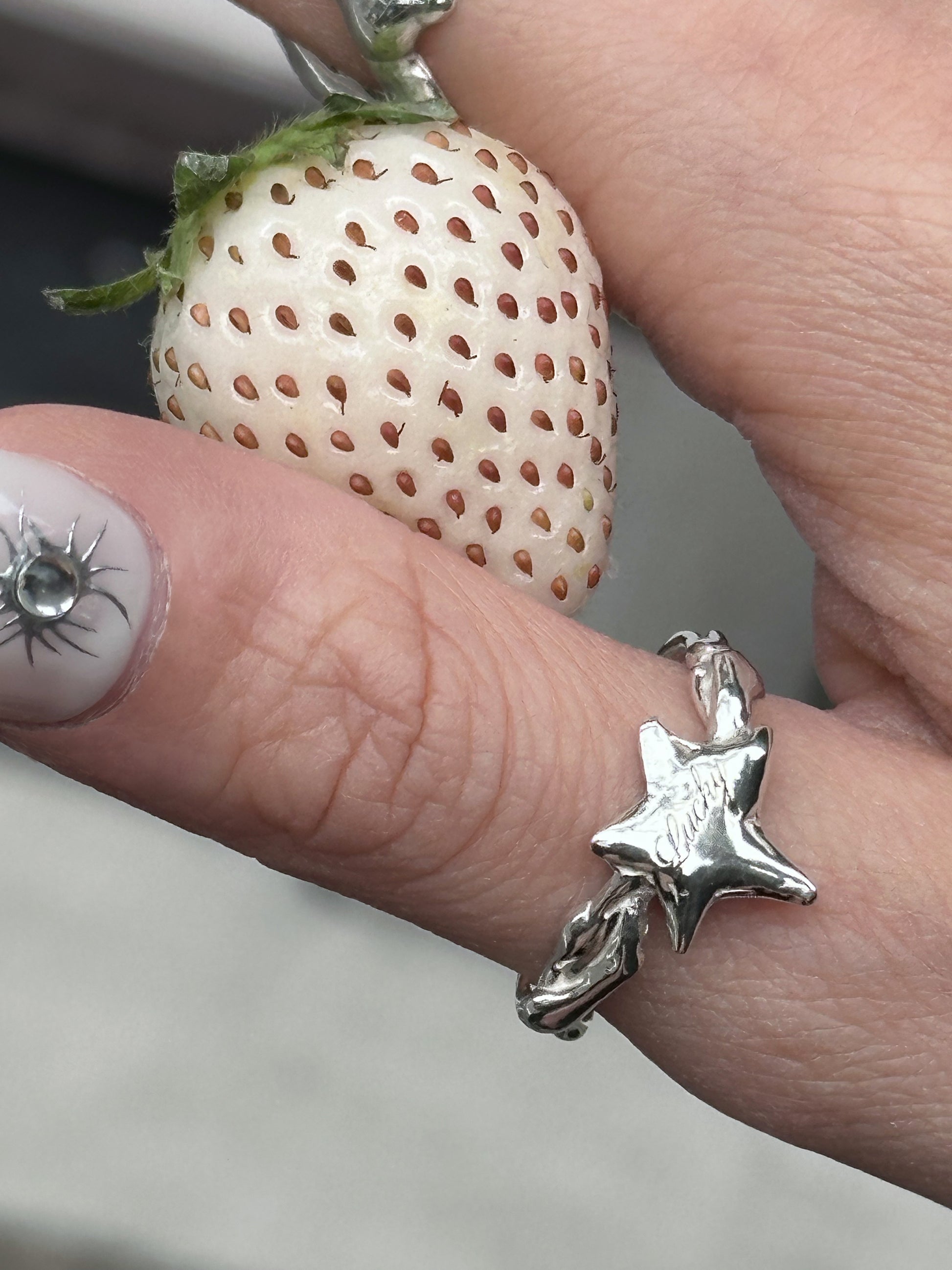 The Lucky STAR Ring is handcrafted in recycled 935 silver, adorned with a star and a Lucky font engraving.